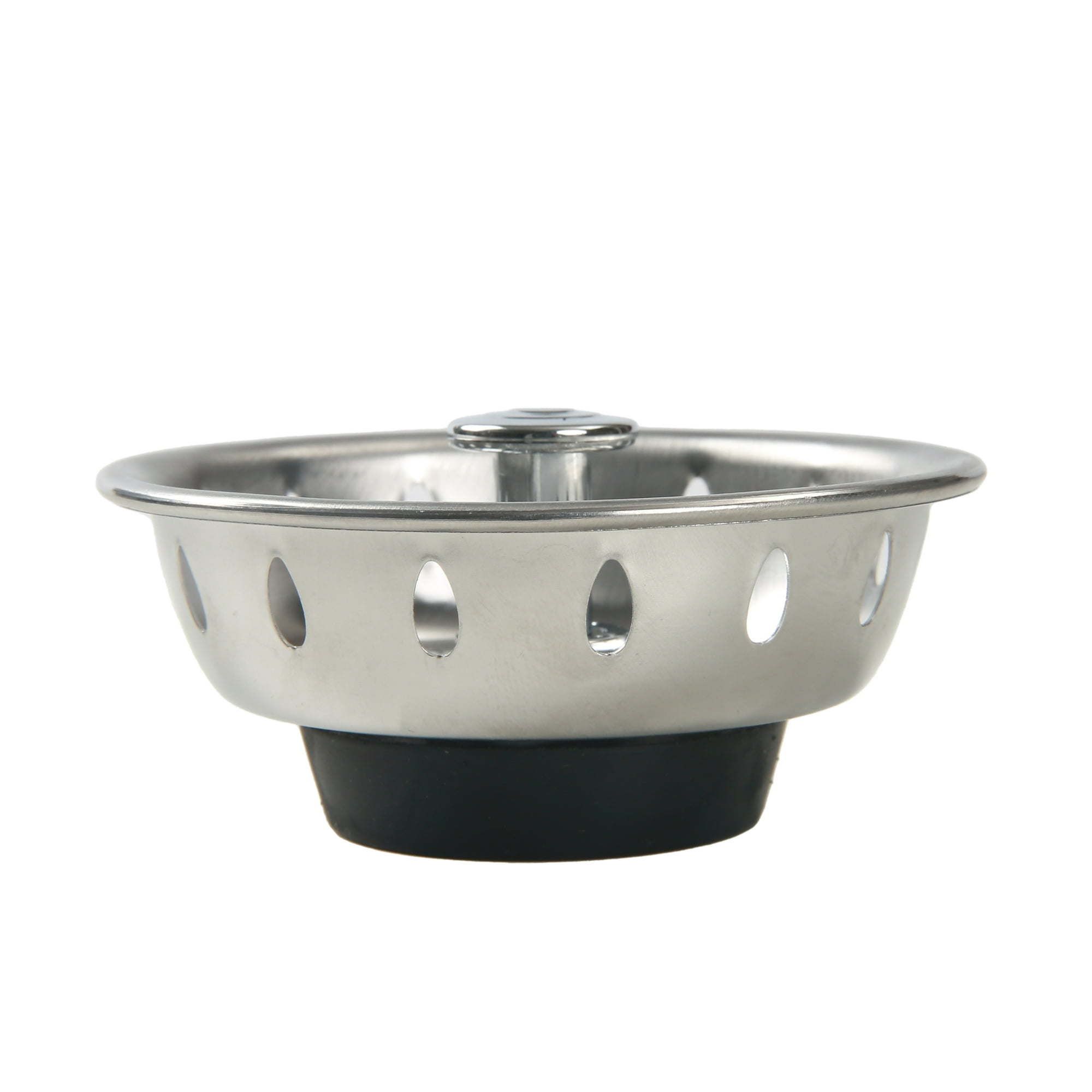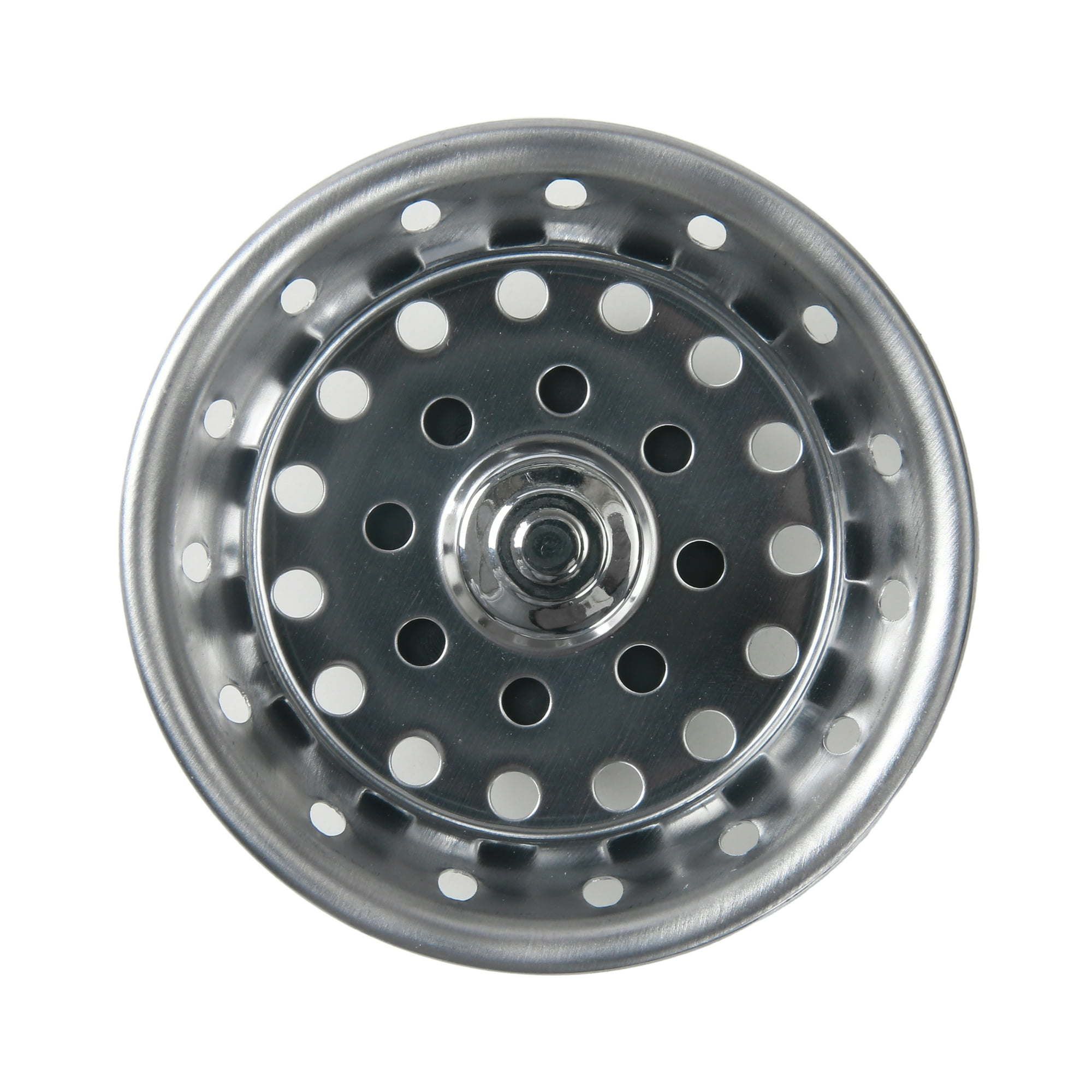 The Stainless Steel Kitchen Sink Strainer and Stopper fits most standard 3 1/2" kitchen sink drains. The stainless steel construction is durable, corrosion resistant, and rust proof for many years of use. The strainer requires a narrow center hold style drain for proper installation. This strainer and stopper combo is easy to use. Push and twist the center knob to fill the sink with water, twist and pull to strain. Convenient and easy to clean basket. Measures 3.18" in diameter.