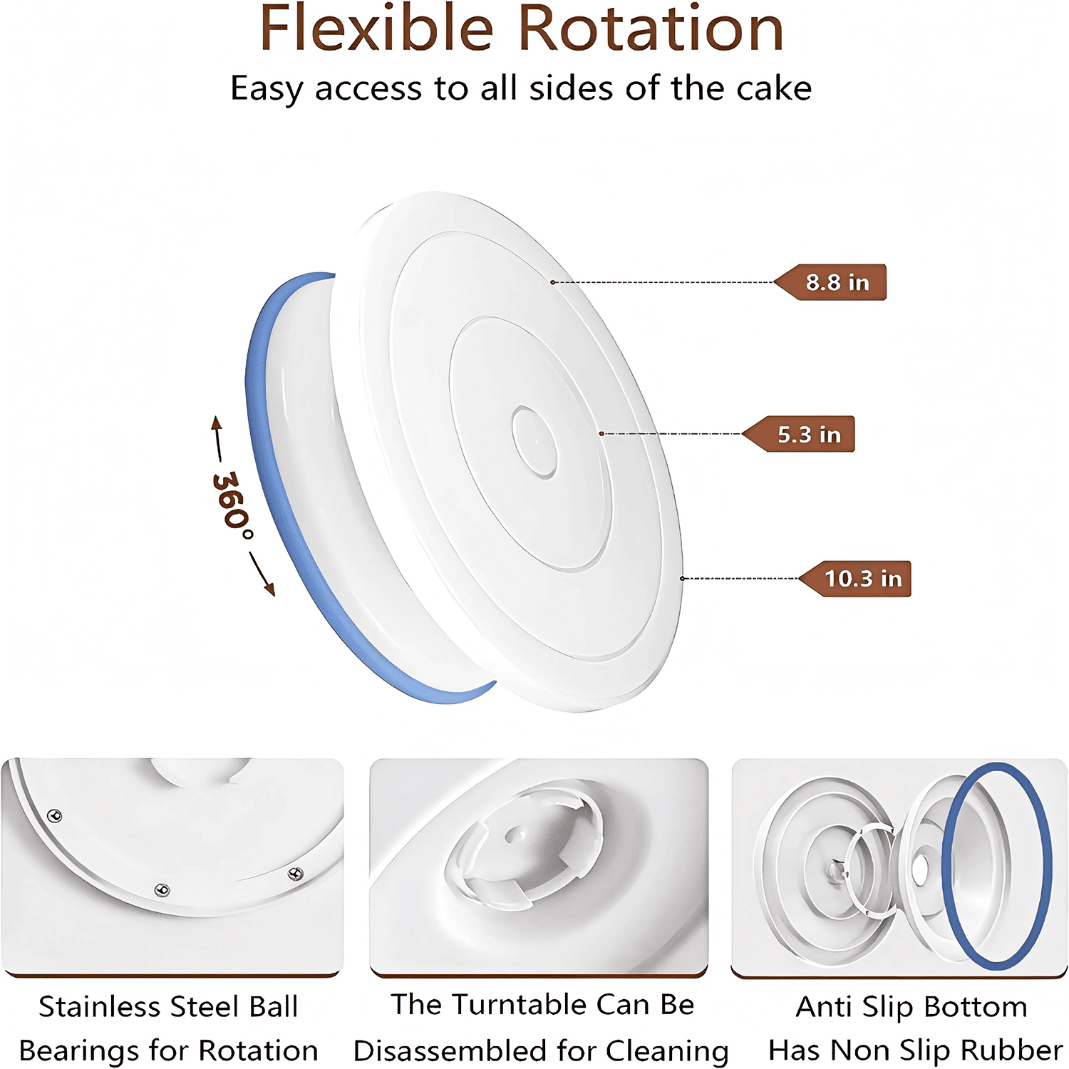 The set includes 54 numbered icing tips and 4 Russian tips, paired with the included pattern guide manual, so even beginners can quickly master the techniques for creating different patterns. The 360° rotating cake turntable ensures smooth and even frosting and decorating. Paired with flower nails, you can easily create three-dimensional rose and other floral decorations; 9 fondant carving pens help you create delicate textures, making your cakes look stunning.