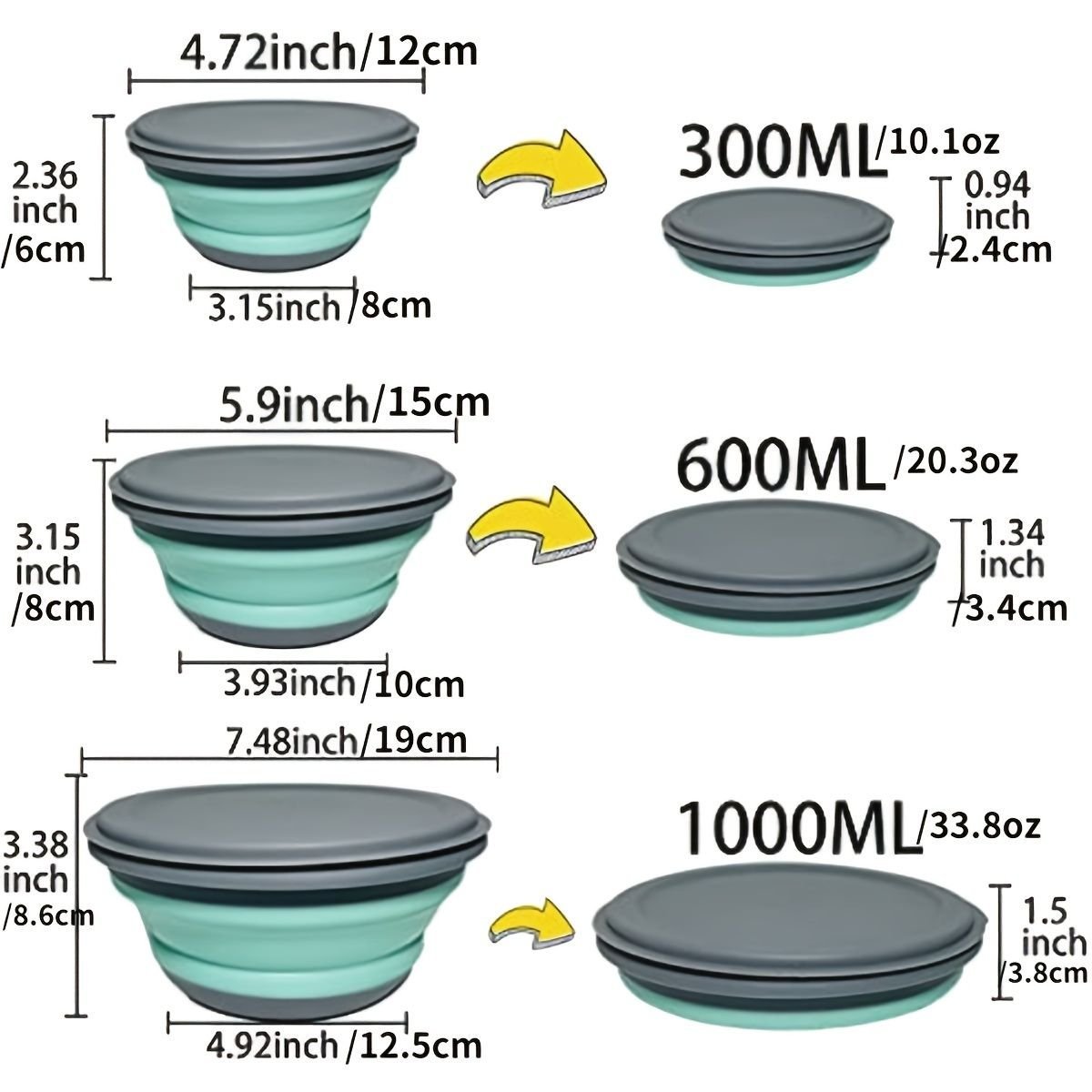 [Collapsible Design]This Food Container Can Folds Down To 1/3 Of Its Original Size. Fits Well For A Pocket; Purse; Backpack; Suitcase ; Gloved Storage And Takes Up No Space. Perfect For Camping Trips; Hikes; Travels; Picnics; Hikes; Outdoor Events; Schools; Offices; Take With You Everywhere; Every Day.