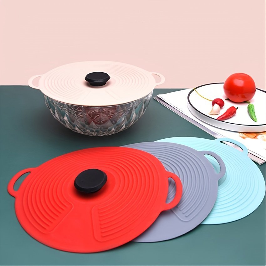 Home > 1pc Silicone Fresh-keeping Lid; Spill-proof; Leak-proof And Dust-proof Silicone Pot Lid; Cutlery Silicone Pot Lid