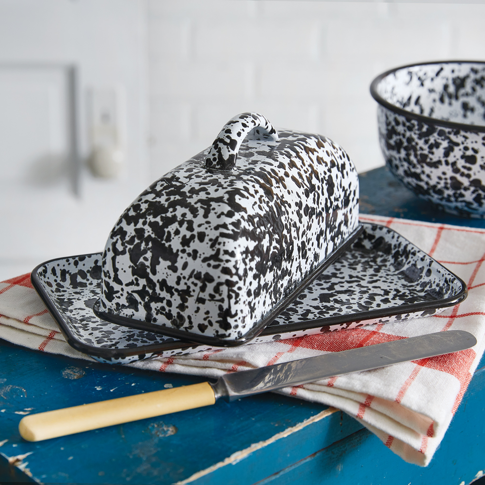 Home > Handcrafted Splattered Enamel Butter Dish - Stylish Kitchen Accessory for Serving and Storing Butter